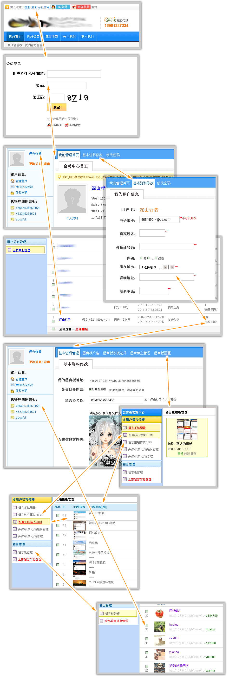 多用戶留言板一些后臺演示效果  演示地址 http://danbook.qwbm.net/lyb/