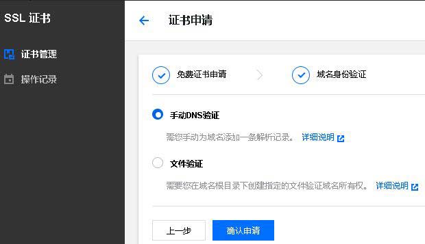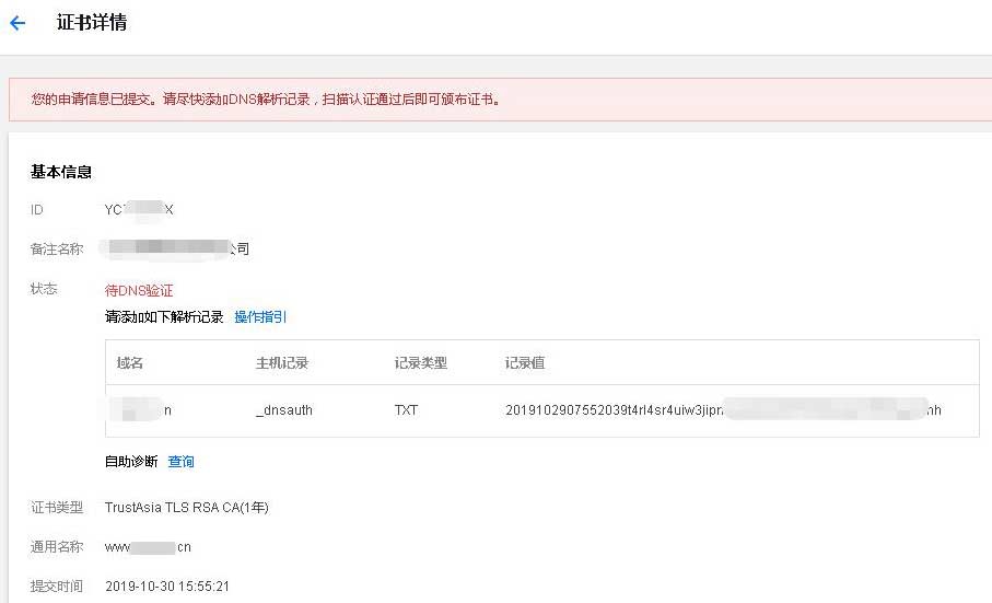5. 申請好證書之后,需要對域名進行txt別名解析。